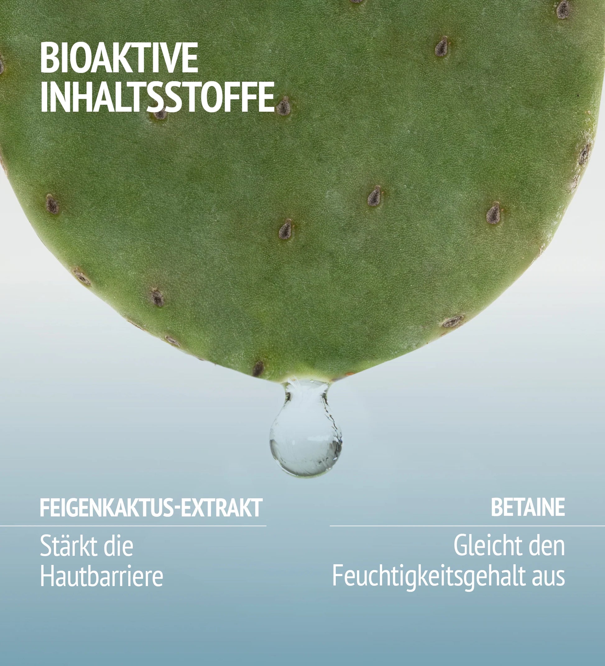 Opuntia cactus extract promotes the growth of keratinocytes, which are responsible for the skin's barrier layer and moisture retention. Betaine regulates water diffusion inside and outside the cells, maintaining hydration and protecting the skin from environmental stress factors.