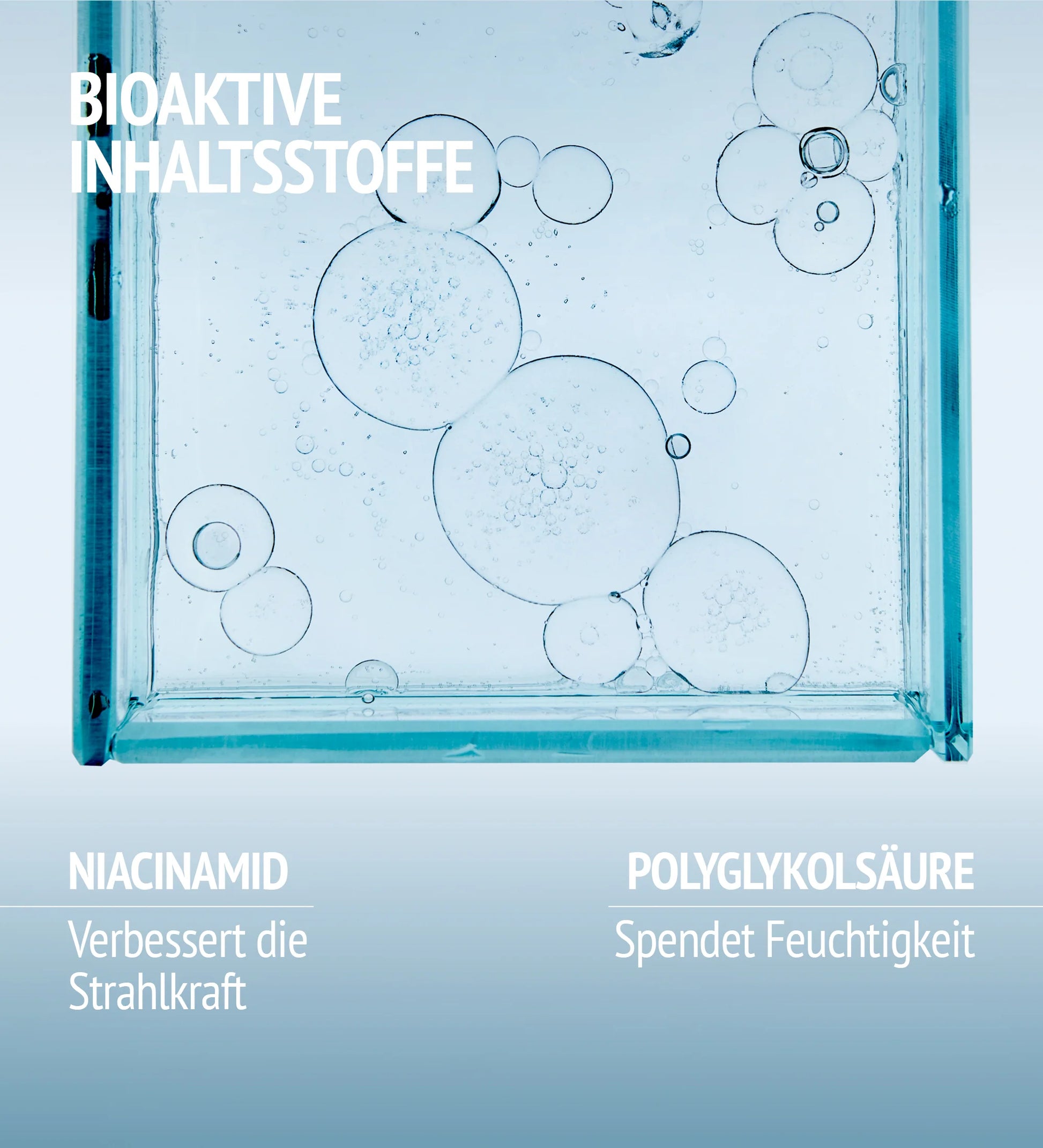 Ниацинамид в комбинации с полиглутаминовой кислотой не только сохраняет в коже влагу, но и мягко обновляет, питает ее, выравнивая тон.