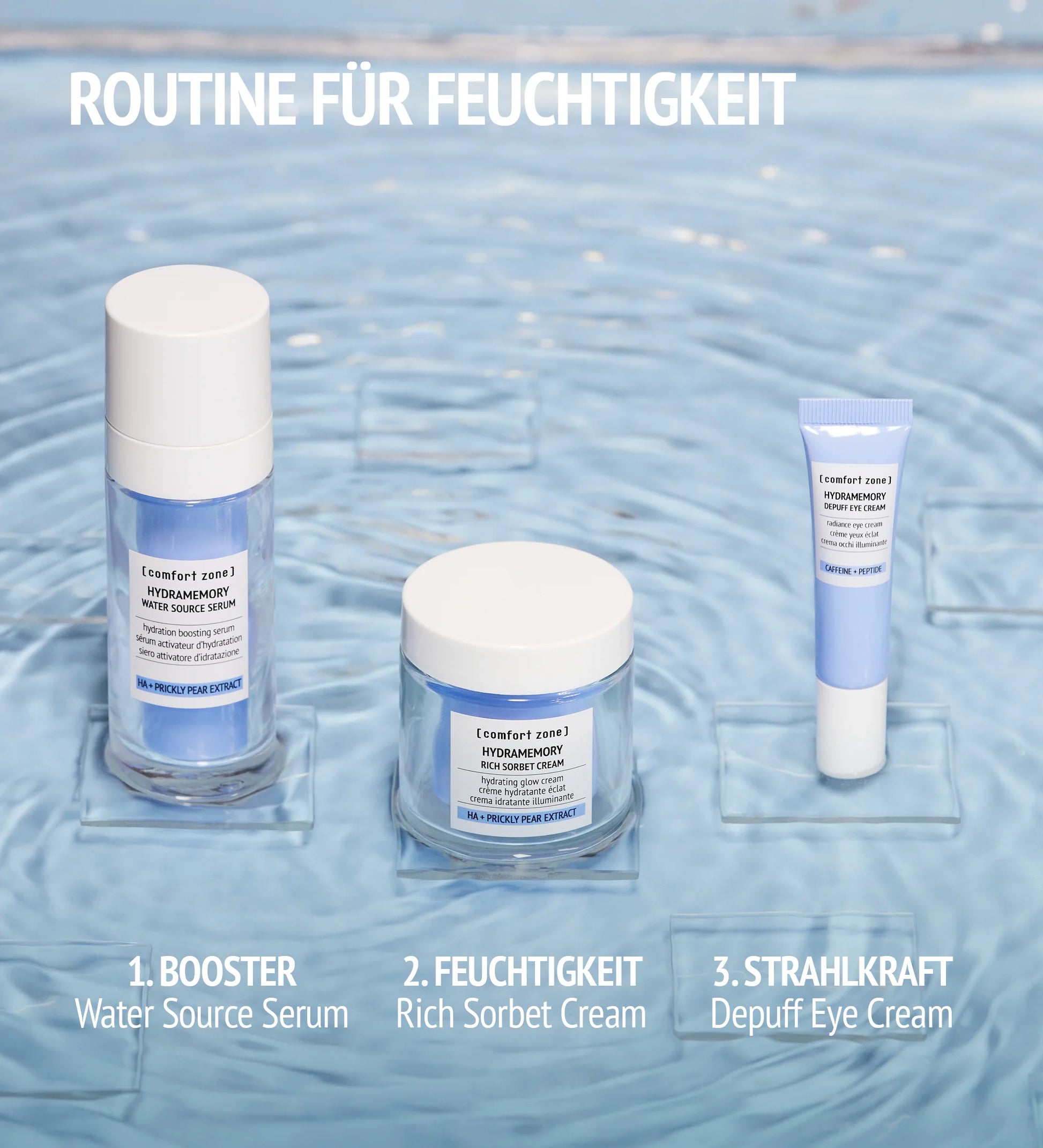 Лёгкая, быстро впитывающаяся текстура-сорбет мгновенно увлажняет кожу, обеспечивая сохранение влаги в разных слоях эпидермиса на 24 часа.
