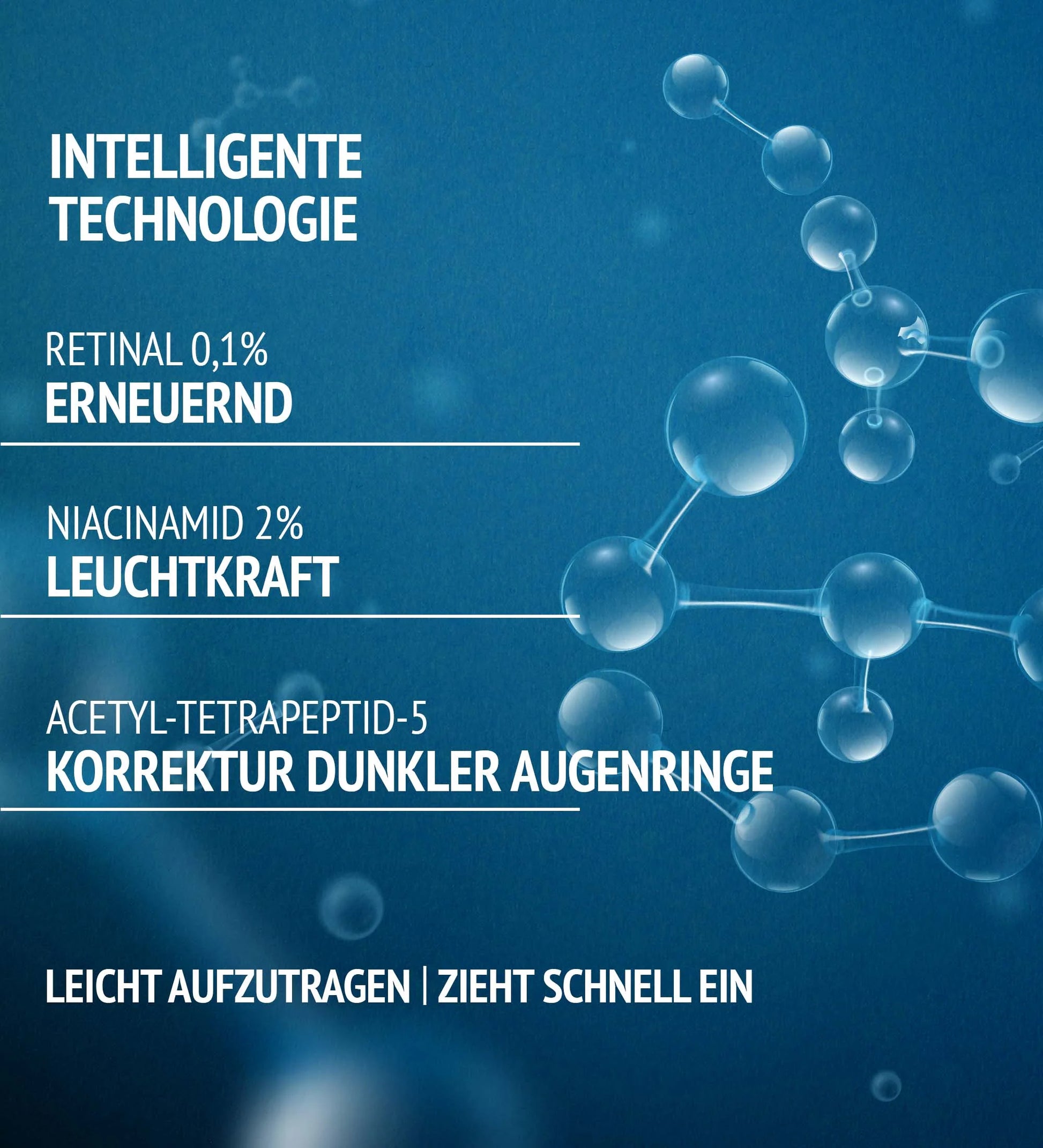 Retinal, niacinamide, and peptide stimulate regeneration and collagen synthesis, evening out skin tone and texture.