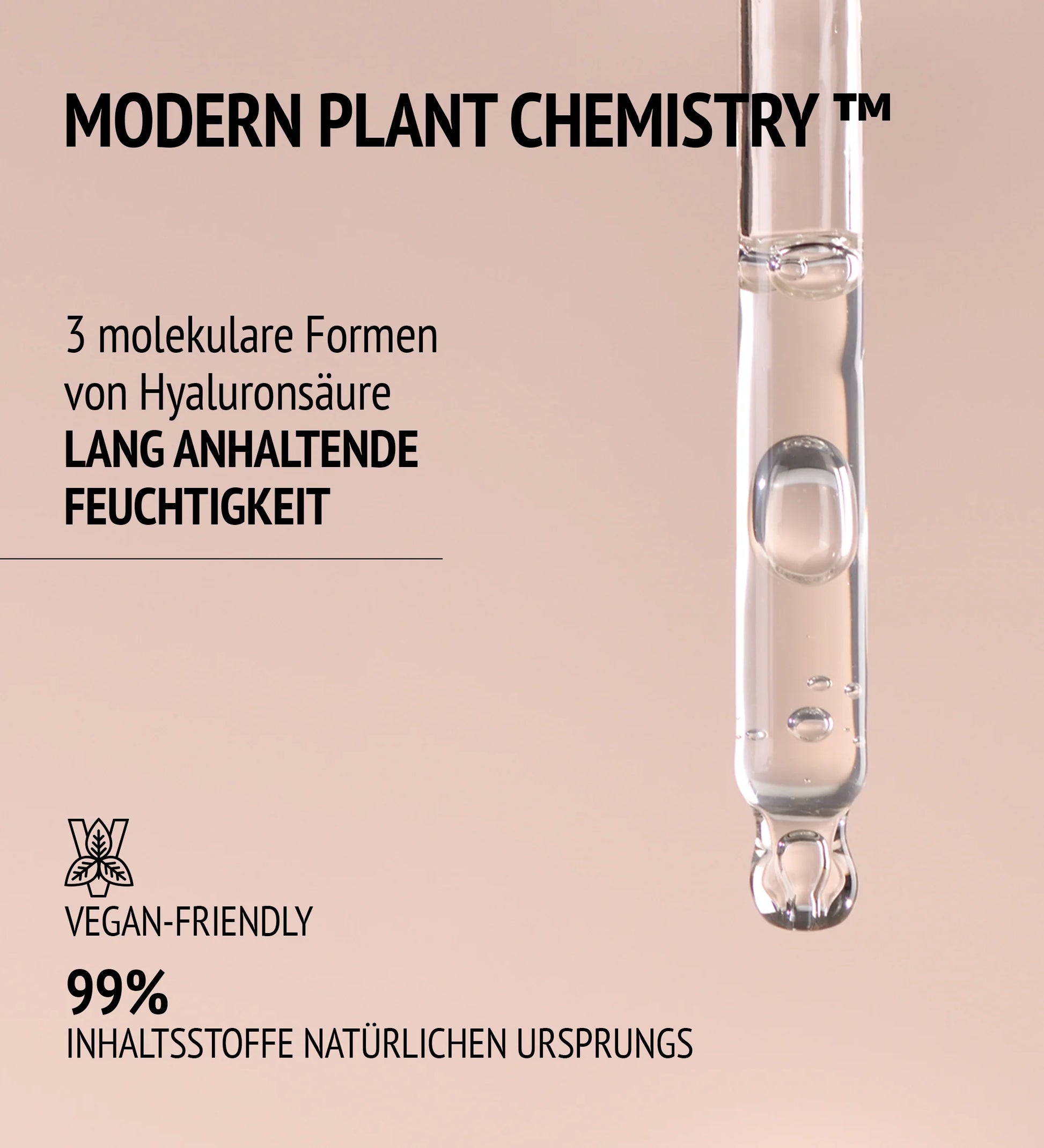 Concentrate with micro, macro, and cross-linked hyaluronic acid and Longevity Complex™. The lightweight texture is quickly absorbed. The booster intensively hydrates and plumps the skin.
